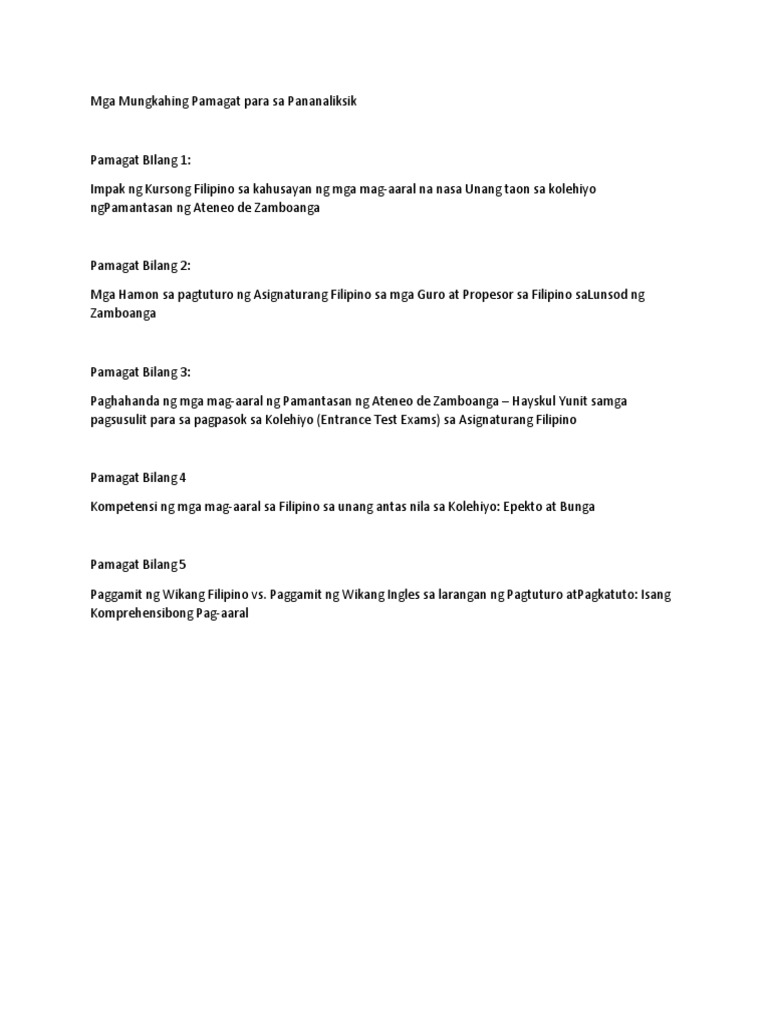 Mga Mungkahing Pamagat Para Sa Pananaliksik