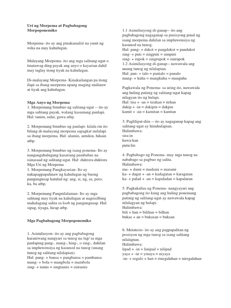 Uri Ng Morpema At Pagbabagong Morpoponemiko