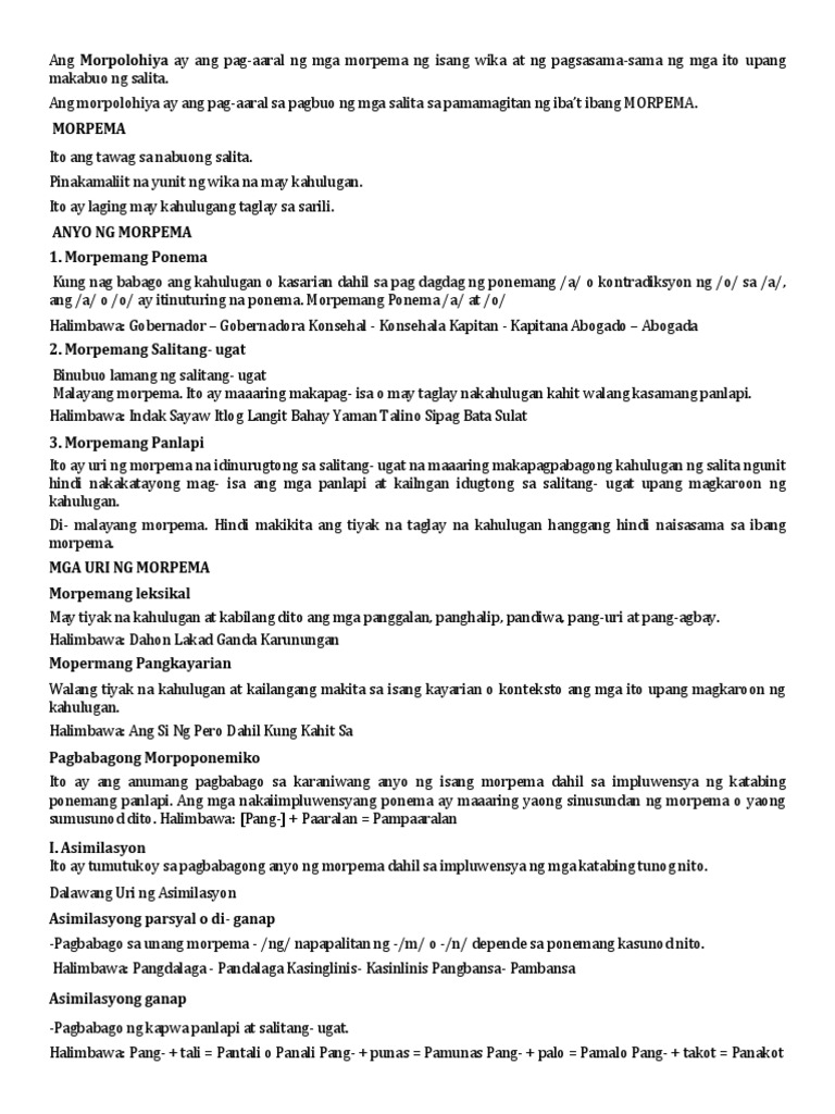 Ang Morpolohiya Ay Isang Pag Aaral O Pagsusuri Sa Mga Morpema Ng Isang Wika At Pagsasama Sama Nito
