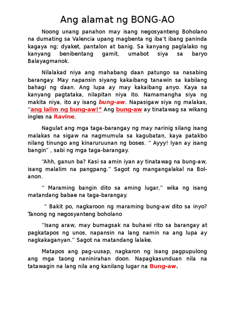 Noong unang panahon panahon pa ng Espanyol marami nang digmaan ang naganap sa ibat-ibang lugar sa Bicol. 2 on a question. Ang pinagmulan ng alamat na ito ay nasa isang phosphorescence na makikita sa mga burol at daloy ng hilagang-kanlurang Argentina sa panahon ng mga tuyong buwan.