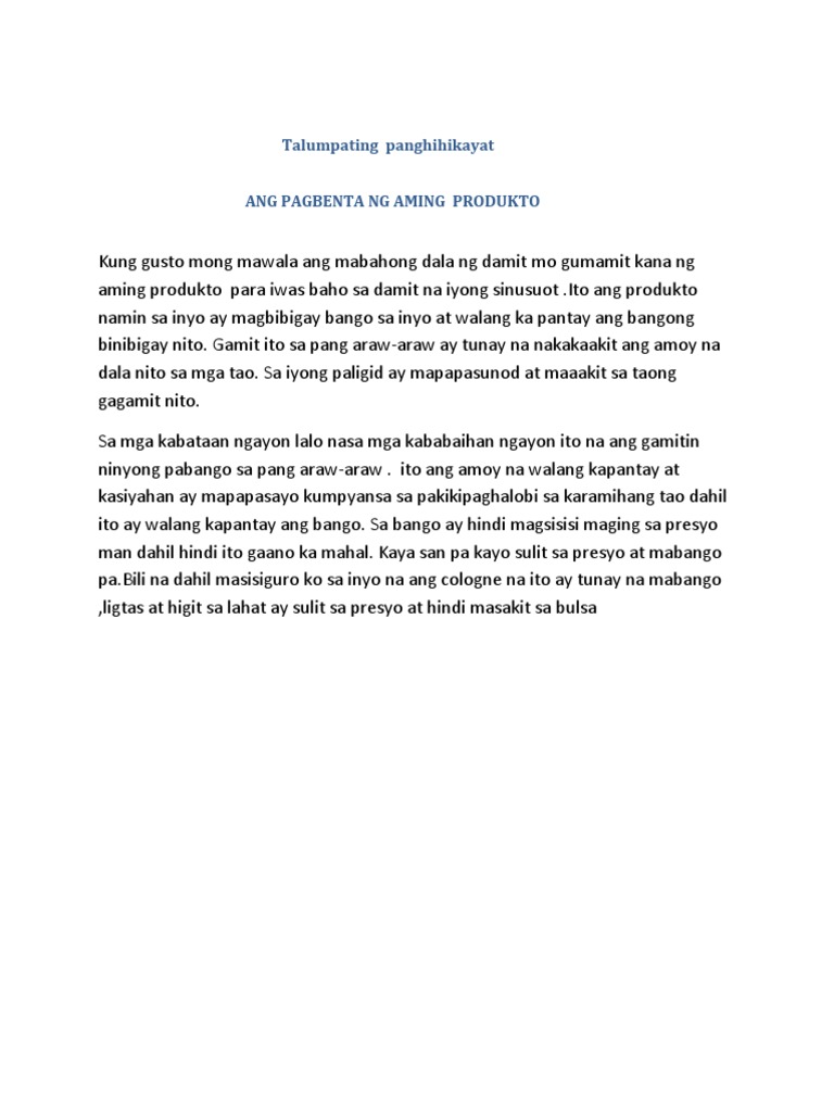 Halimbawa ng panghihikayat na teksto. Naratibong Teksto Halimbawa ng pasalaysay na kwento STEM 116 Joseph Jansen Mediana Sharmaine Lacanlale Paul John Mante Eral Stephen Tan Bryan Santos Erryl Del Rosario Rechelle Mae Caguco JOSEPH JANSEN MEDIANA STEM 116 Pag-iibigan ng Prinsipe at Prinsesa Noong unang panahon may isang prinsesa na ubod ng ganda at may isang prinsipe naman na naging kasintahan ng. Elemento ng tekstong argumentatibo. Halimbawa ng Tekstong Persweysiv-iskrip sa patalastas-propaganda sa eleksyon-Pliers ng produkto-brochures na nanghihikayat-networking Open Minded Ka Ba.