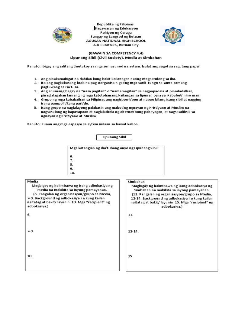 Civil Society Organization Mapping Panuto Sa Tulong Ng Mga Kasama Sa Bahay O Gamit Ang Internet Magsaliksik Ukoltukuyin Kung