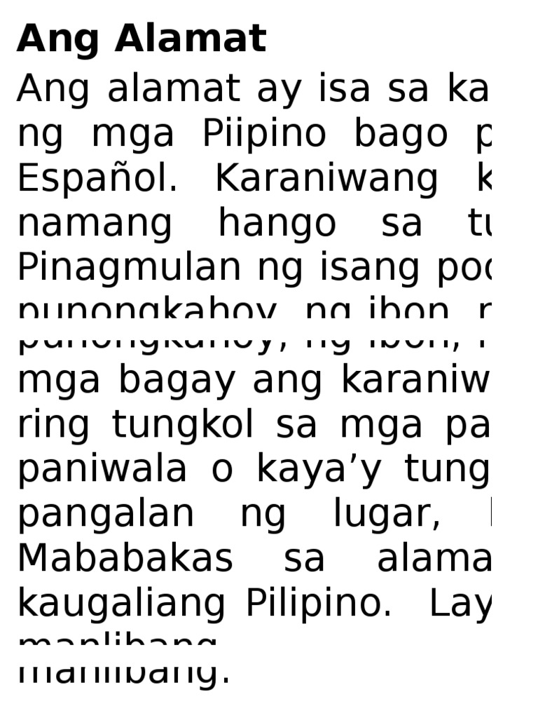 Kwentong Bayan Alamat At Epiko Grade 8