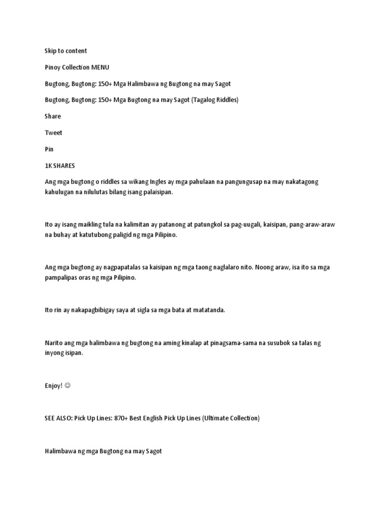 Bugtong Bugtong 150 Mga Bugtong Na May Sagot W Pictures