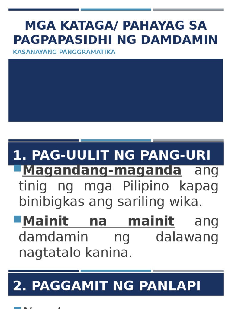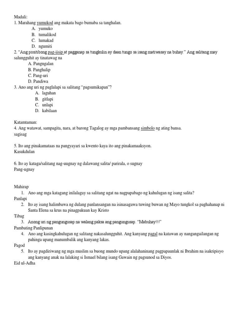 Ginitlapian - kapag gitlapi ang inilagay sa salitang-ugat. Nagsisinungaling ang gusto mo lang alam na natin ang totoo. The second was about tambalang salita or filipino compound words.