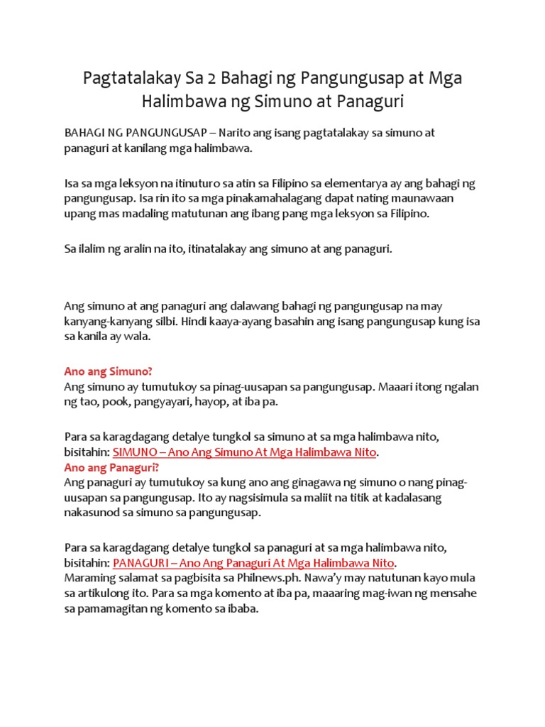 Bahagi Ng Pangungusap Ano Ang Simuno At Panaguri Mga Halimbawa