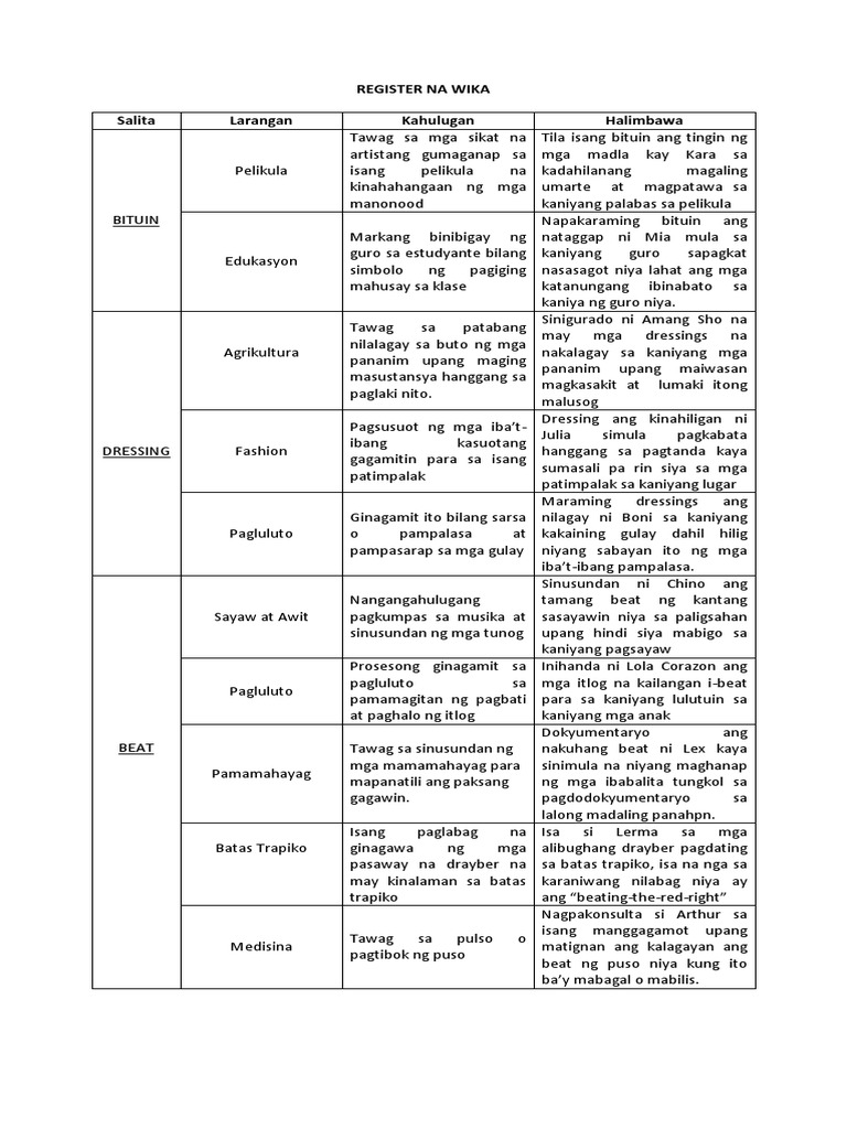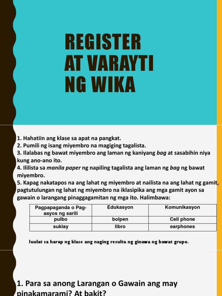 Aralin 3 Register Bilang Varayti Ng Wika Pdf