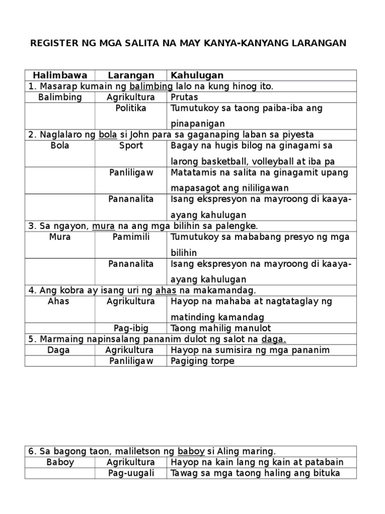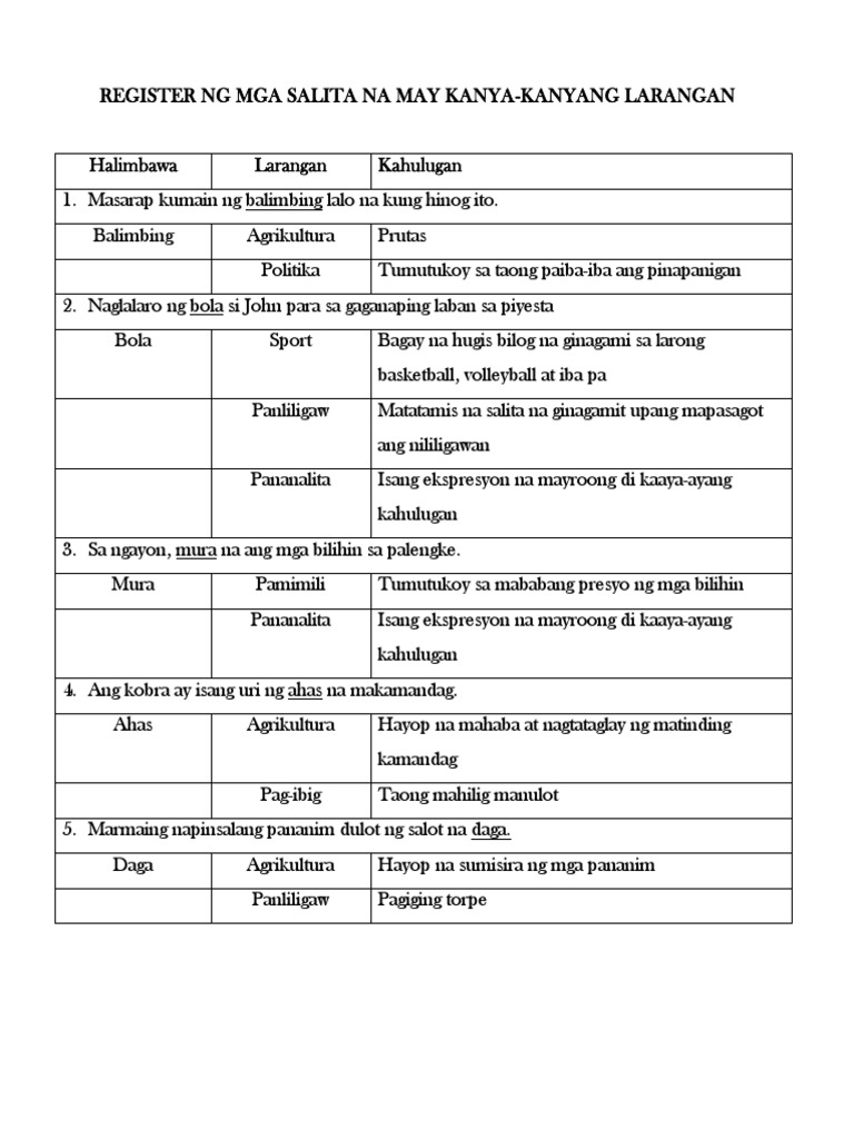 Register Na Wika Kahulugan At Mga Halimbawa