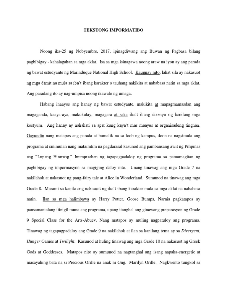 Mga Halimbawa Ng Tekstong Impormatibo Docx