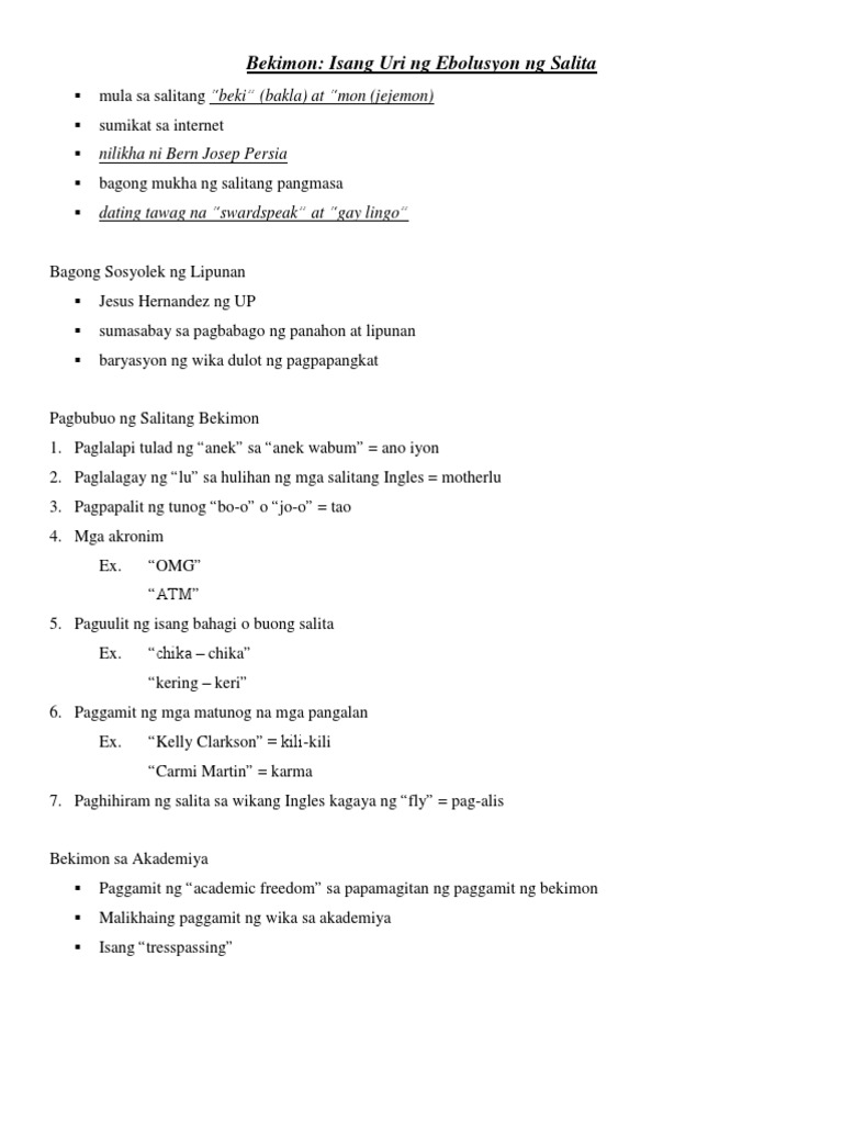 Bekimon Isang Uri Ng Ebolusyon Ng Salita
