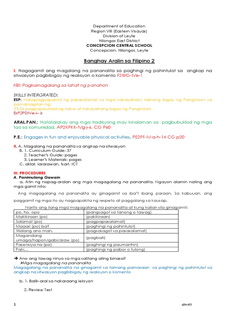 Filipino 2 Melc 2 Nagagamit Ang Magalang Na Pananalita Sa Angkop Na Sitwasyon Youtube