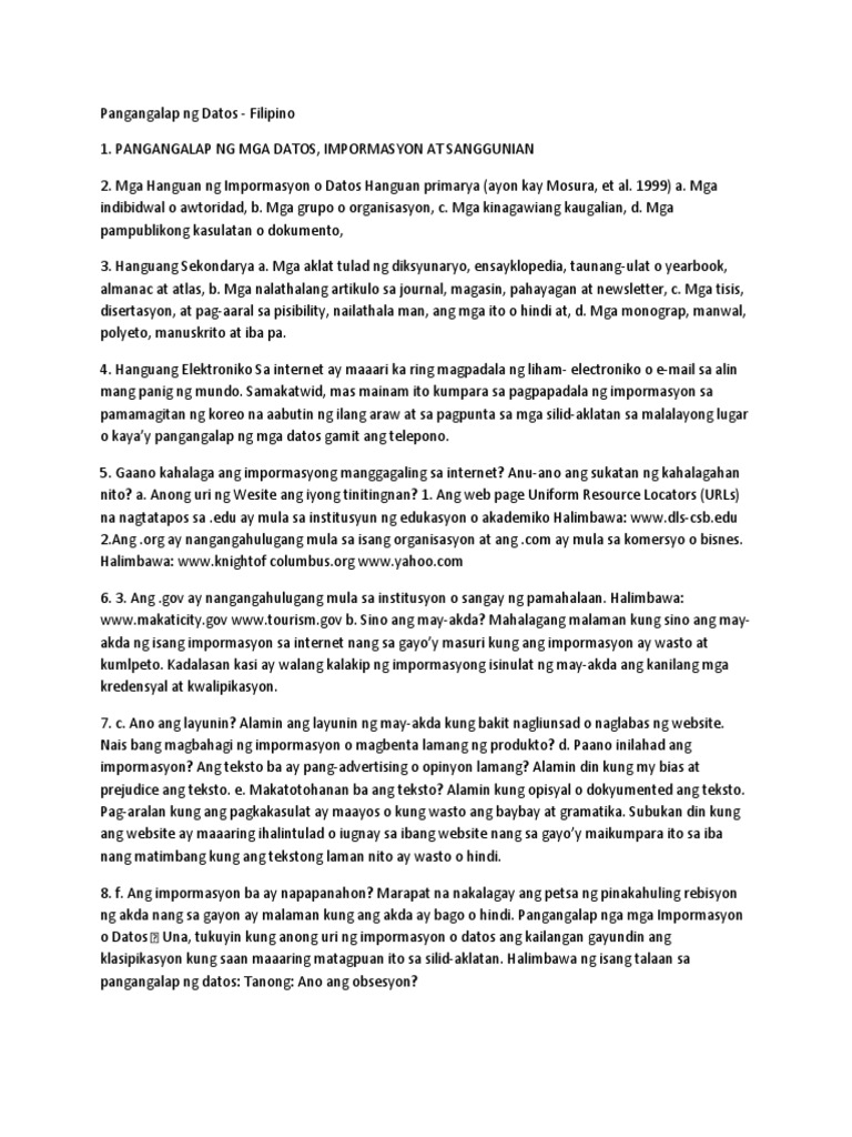 Ang kakayahang maghanap magtipon mag-aralan bigyan ng kahulugan at tasahin ang impormasyon at data na nauugnay sa iyong sinasaliksik na kilala bilang mga kakayahan sa pagsasaliksik. PANGANGALAP NG MGA DATOS IMPORMASYON AT SANGGUNIAN 2.