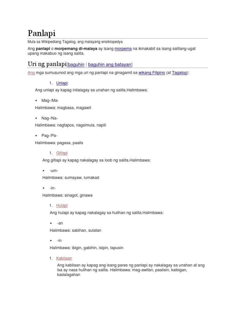 Halimbawa ng panlapi o salitang ginagamit. Maaring na idinagdag ito sa unahan gitna o hulihan ng mga salitang-ugat upang makabuo ng isang panibagong salita. Mag- palaging ginagamit na unlapi ginigitlingan ang pandiwa kung ang salitang-ugat ay nagsisimula sa patinig Halimbawa. Mag-ala mag-usap magsaliksik um- maaaring maging unlapi o gitlapi Halimbawa.