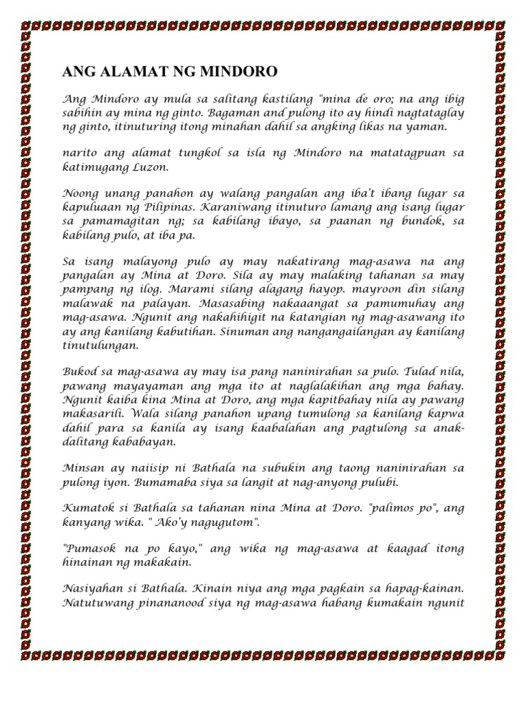 Halimbawa Ng Alamat Buod Maikling Kwentong