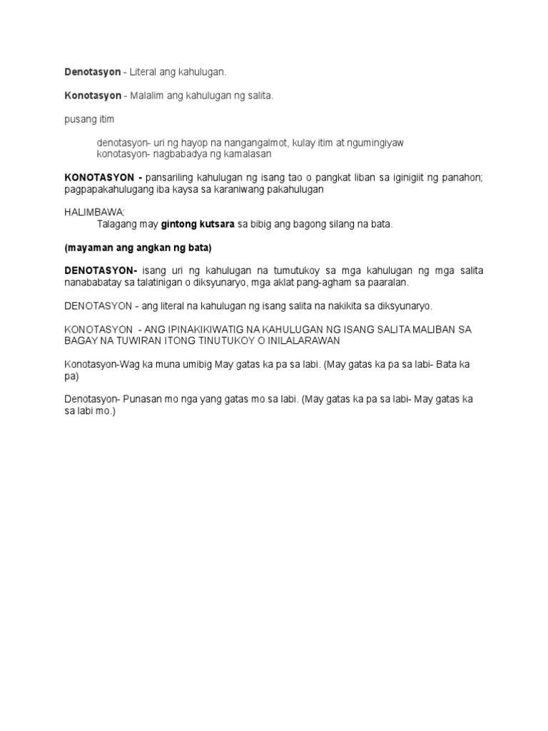 Ang Mga Halimbawa Ng Konotasyon Where To Download Ang Mga Halimbawa Ng Konotasyon At Denotasyon prepare the ang mga halimbawa ng konotasyon at denotasyon to right to use every daylight is gratifying for many people. Mayaman na angkan Kahulugan ng Konotasyon at Denotasyon Konotasyon - Ito ay ang pansariling kahulugan ng isa o grupo ng tao sa isang salita Ang kahulugan ng konotasyon ay iba sa pangkaraniwang kahulugan Denotasyon - Ang mga kahulugan ng mga salita ay makikita sa diskyunaryo. K12 Filipino Jan 2013 Pdf.