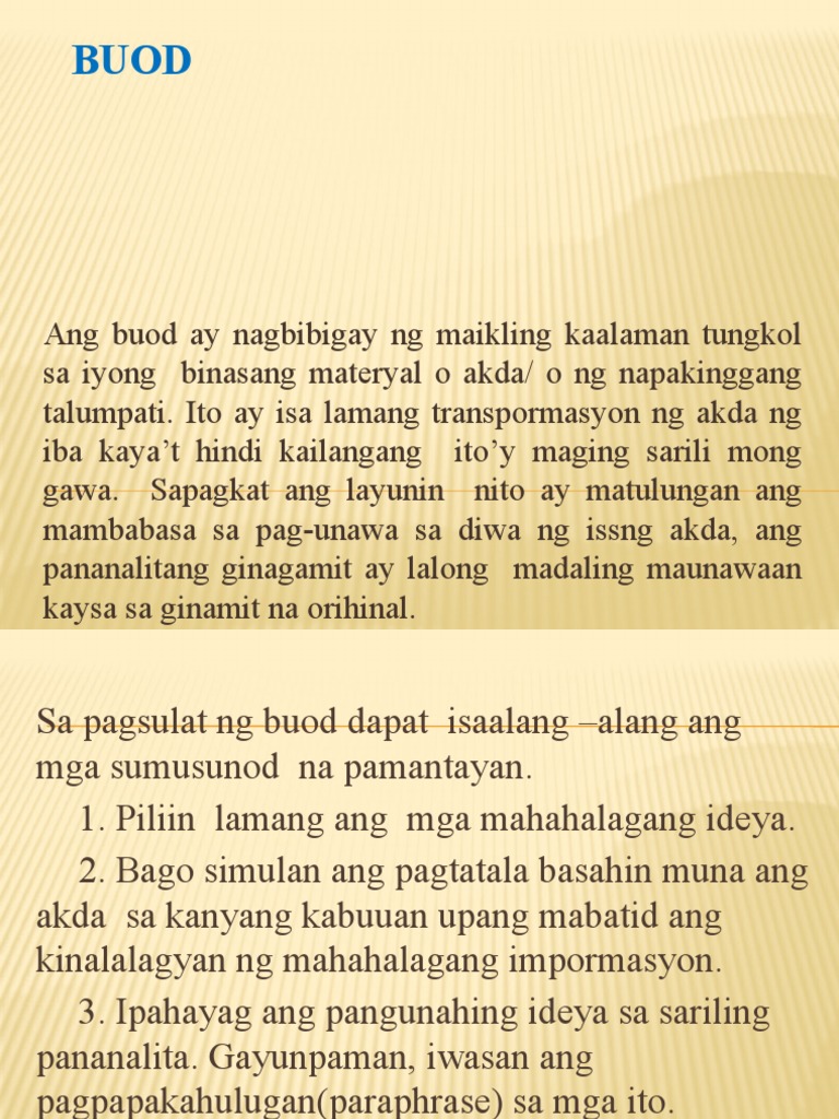 Maikling buod batay sa pananaliksiktesisrebyu o katitikan ng komperensya.