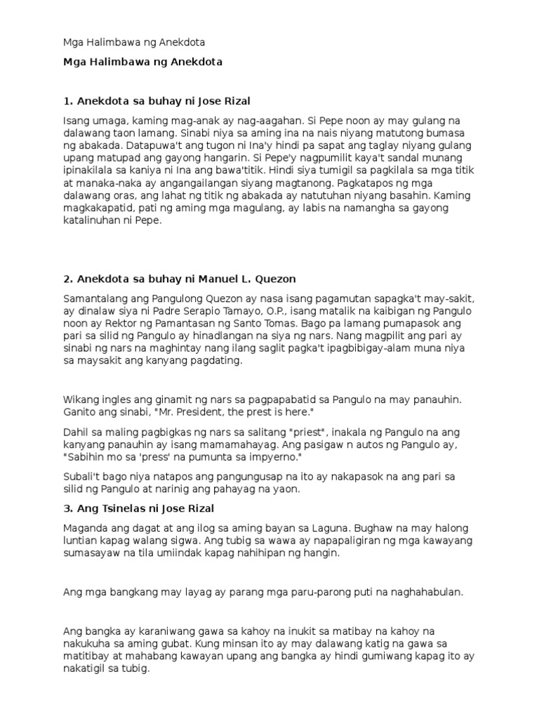 Anekdota Mga Halimbawa Ng Anekdota Anecdote
