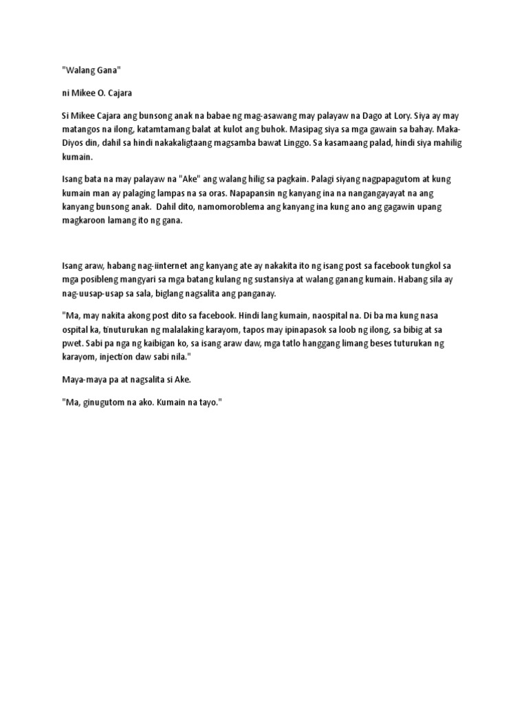 Basahin ang 5 Halimbawa ng Maikling Kwento na may Aral. Araw araw ay pumapasok ako sa paaralanhindi nagpapahuli sa flag ceremony at sa loob ng silig-aralan ay ako ay nakikilahok sa mga aktibidad. Mga kamay na pinagkukunan mo ng isang libo.