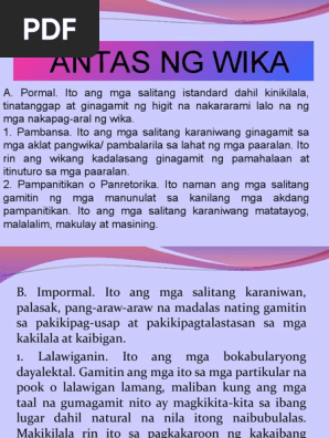 Subalit may malaking pagkakaiba ang dalawang uri ng salitang ito. Find an answer to your question bumuo ng isang pangungusap na nag papakita ng mga antas ng wika. Impormal o Di pormal 3.