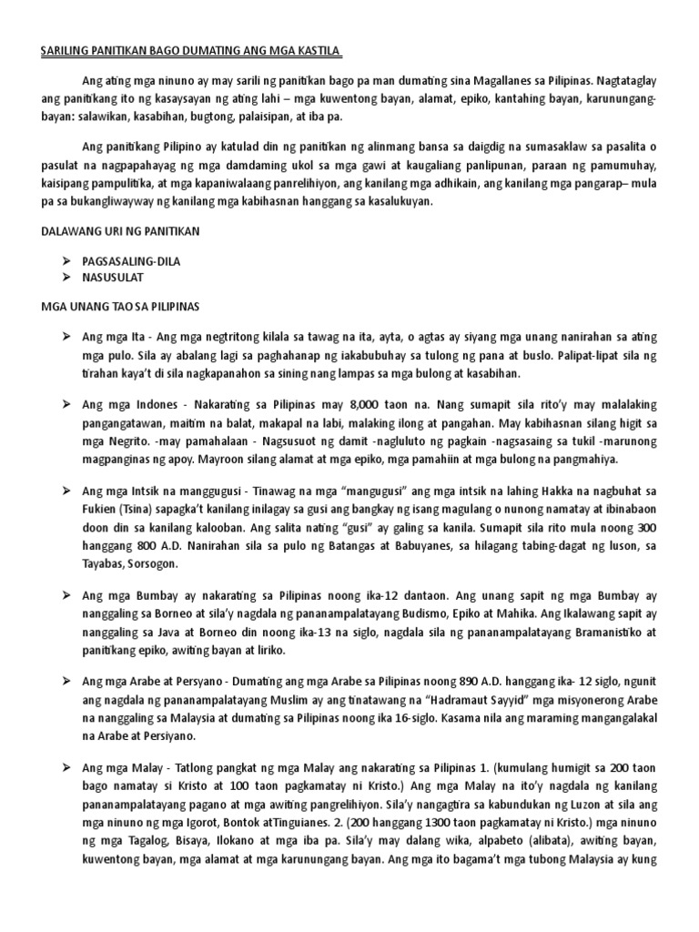 Ito ay aklat na naglalaman ng mga detalyadong impormasyon tungkol sa ibat ibang paksa. BAGO DUMATING ANG MGA KASTILApptx from GNED 14 at Cavite State University Main Campus Don Severino de las Alas Indang. Nagsisilbi itong wika ng Pilipino na nagbubunyag ng panlipunan at panlahing kaugalian ng ating pang-araw-araw na buhay na nababakas sa mga kuwentong bayan alamat epiko kantahing bayan kasabihan bugtong palaisipan sinaunang dula at maikling kuwento.