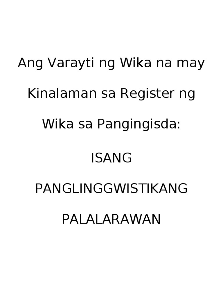 Ang Varayti Ng Wika Sa Navotas Na May Kinalaman Sa Register Ng Wika Sa Pangingisda