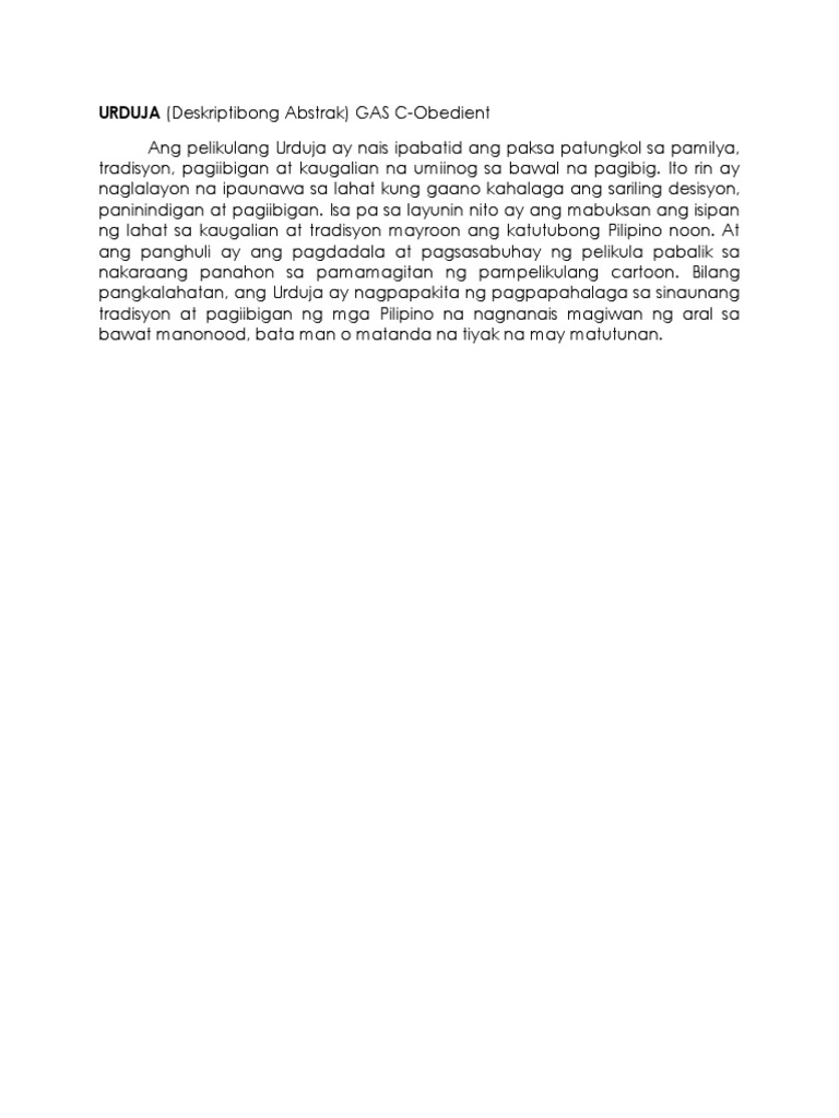 Ang abstrak ay ginagamit sa pagsulat ng akademikong papel para sa tesis lecture at report. Halimbawa ng Deskriptibong Abstrak. Halimbawa ng deskriptibong abstrak.