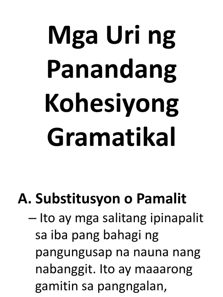 Mga Uri Ng Panandang Kohesiyong Gramatikal