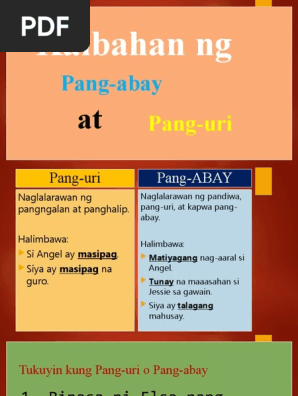 Aralin 1 0 Kaibahan Ng Pang Abay At Pang Uri Pdf