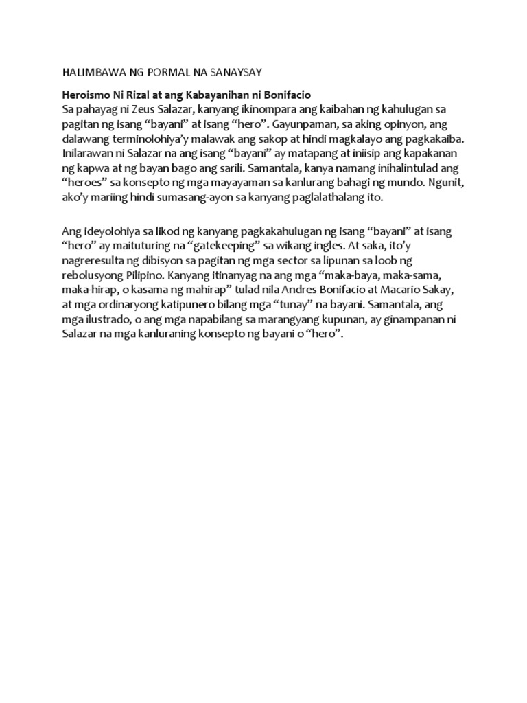 Halimbawa Ng Pormal Na Sanaysay