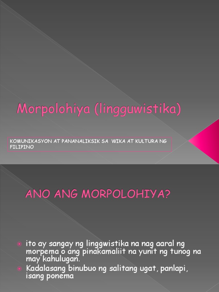 Ang Morpolohiya Ay Isang Pag Aaral O Pagsusuri Sa Mga Morpema Ng Isang Wika At Pagsasama Sama Nito