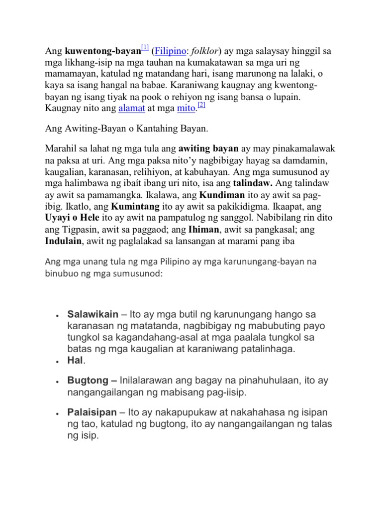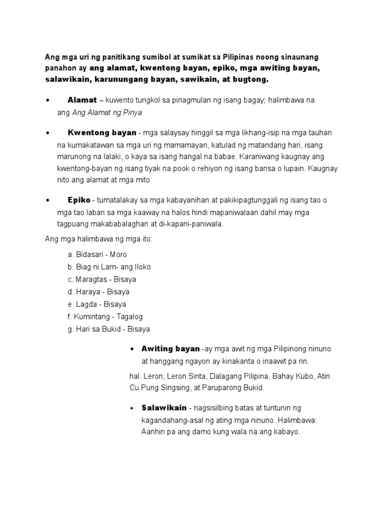 BSALAYSAYING BAYAN 1ALAMAT Halimbawa. - may aral at bibigkas ng patula. Noong araw isa ito sa mga pampalipas oras ng mga Pilipino.