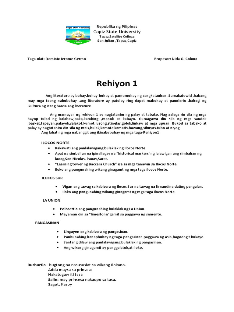 REHIYON NA DULOG ILOKO Rehiyon 1 Rehiyon 2 Cordillera Administrative Region KURDITAN. Tula jesstoni example of poem poem in region 1. Gumagawa rin sila ng mga sandok basket tapayan palayok salakot abelkumot lusongstone mortar tsinelas gulok lingkaw at mga upuan.