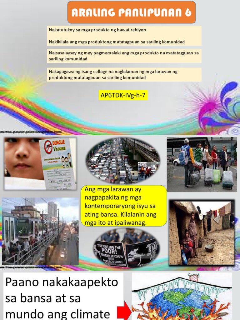 Heto ay nabibigyan ng. Ay maaaring binubuo ng isang collage ng larawan ng anumang tema na ayon sa iyong imahinasyon. Nagiging maunlad ang isang lipunan kung mayroong mga taong ginagawa ang lahat upang mapabuti ang komunidad.