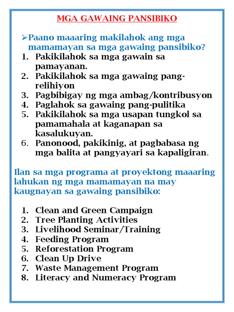 Halimbawa Ng Gawaing Pansibiko Kahulugan At Iba Pa