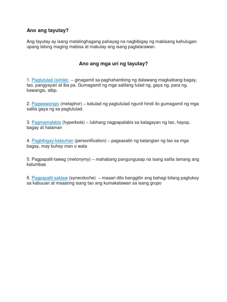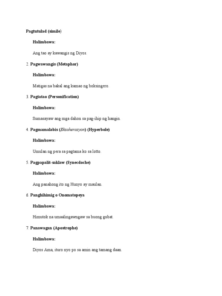 Halimbawa Ng Tayutay Na Pagmamalabis O Hayperbole