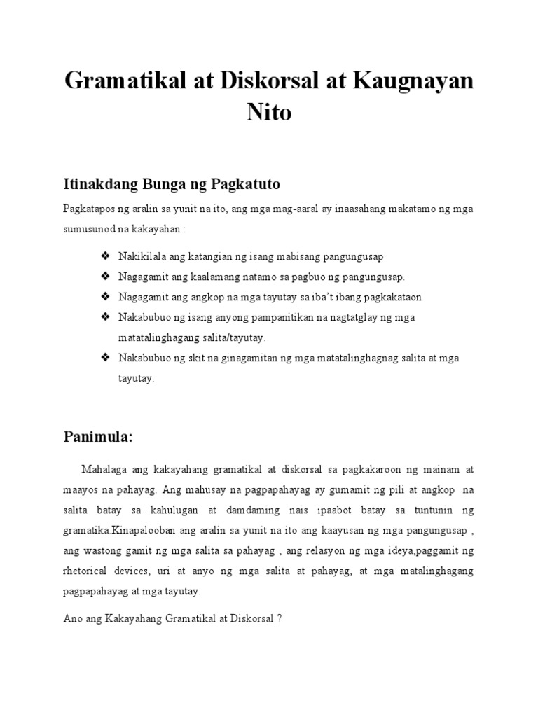 Mp Lesson 2 Gramatikal At Diskorsal At Kaugnayan Nito