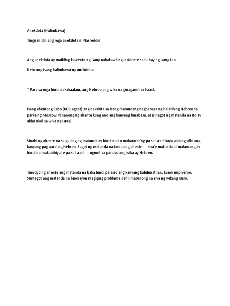 Anekdota Mga Halimbawa Ng Anekdota Anecdote