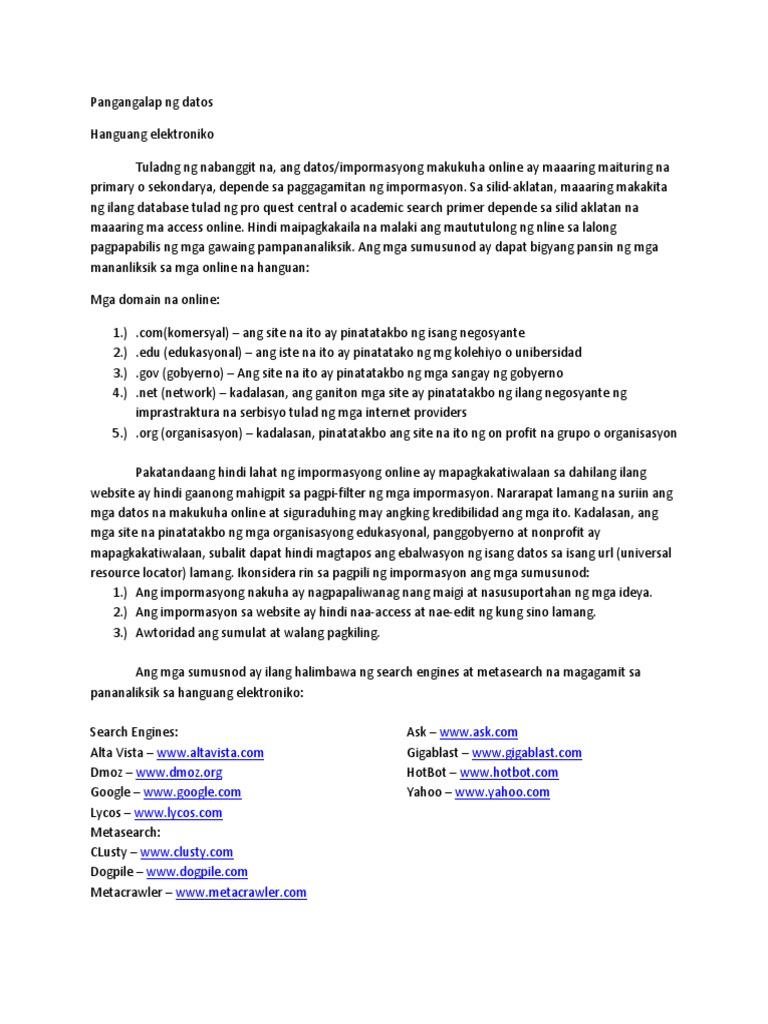 Mga hanguan ng Impormasyon o Datos Hanguang Primarya a. Halimbawa ng case study sa pananaliksik. Hindi gaanong magiging katanggap-tangap ang resulta kung ibabatay lang ito ng mananaliksik sa mga katangian ng mall na paboritong puntahan ng kanilang pamilya.