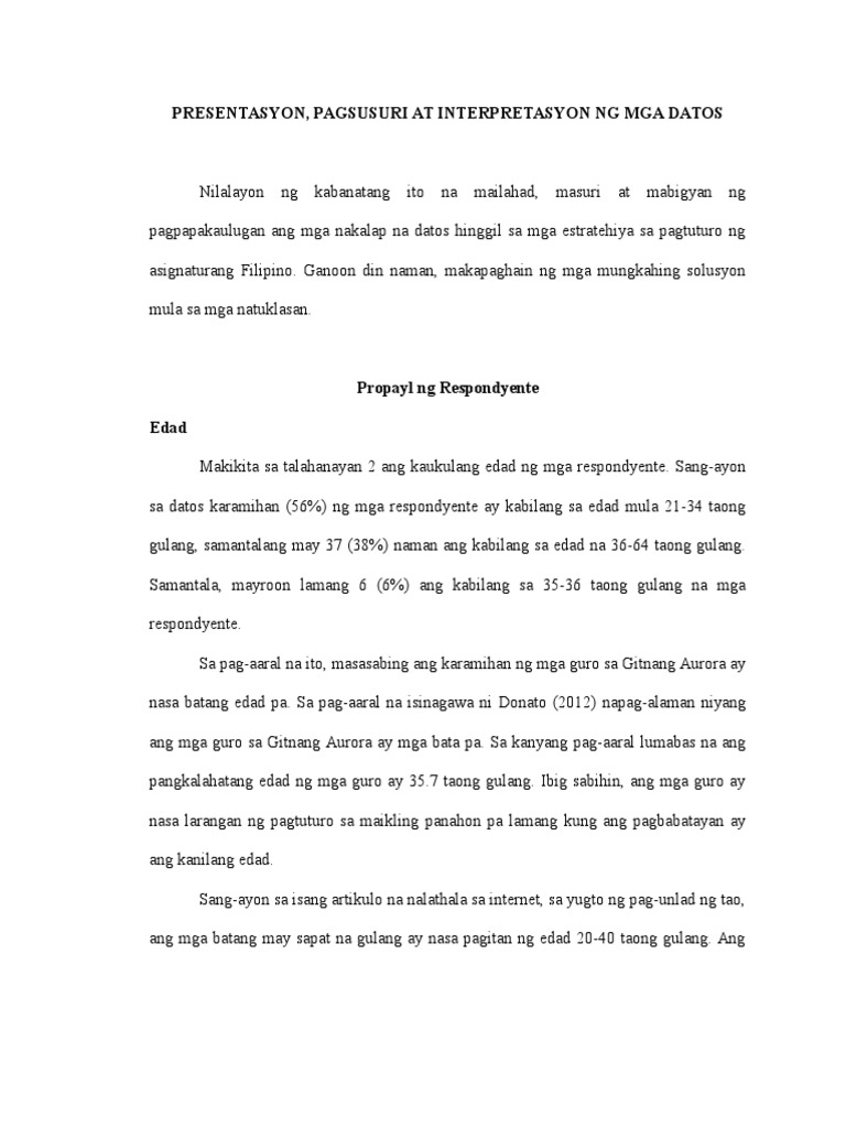 Ang mga mananaliksik ay gumamit ng isang non-probabilistic sampling partikular ang purposive o judgmental na proseso kung saan ang tagatugon ay pinili ayon sa layunin ng pag-aaral. First appearing in the book Kung Sino ang Kumatha ng Florante by Hermenigildo Cruz in 1909 this Tagalog poem was long assumed to have been written by Filipino national hero Jose Rizal when he was eight years old though that assumption is now widely doubted. PAGSUSURI NG DATOS Sa paksang ito ating tatalakayin kung ano nga ba ang mga halimbawa ng pagsusuri ng datos.