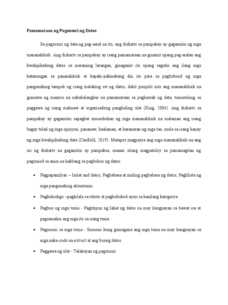 Pamamaraan Ng Pagsusuri Ng Datos