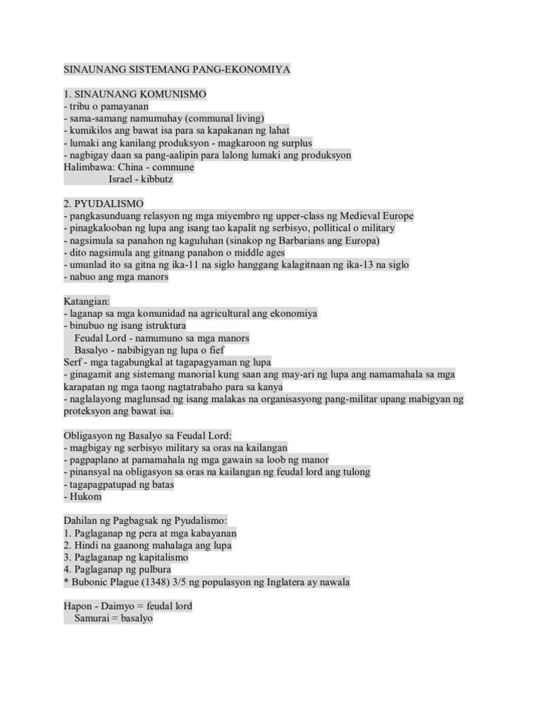 Ang 4 Na Sistemang Pang Ekonomiya Aralipunan