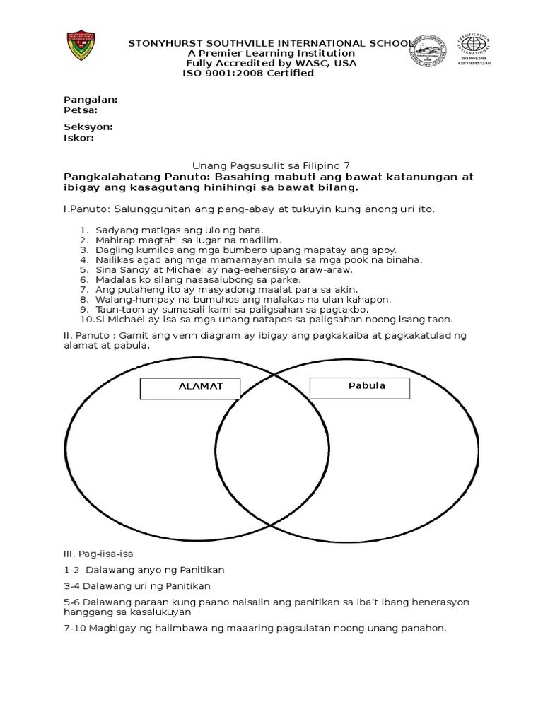 Halimbawa Ng Venn Diagram Maikling Kwentong