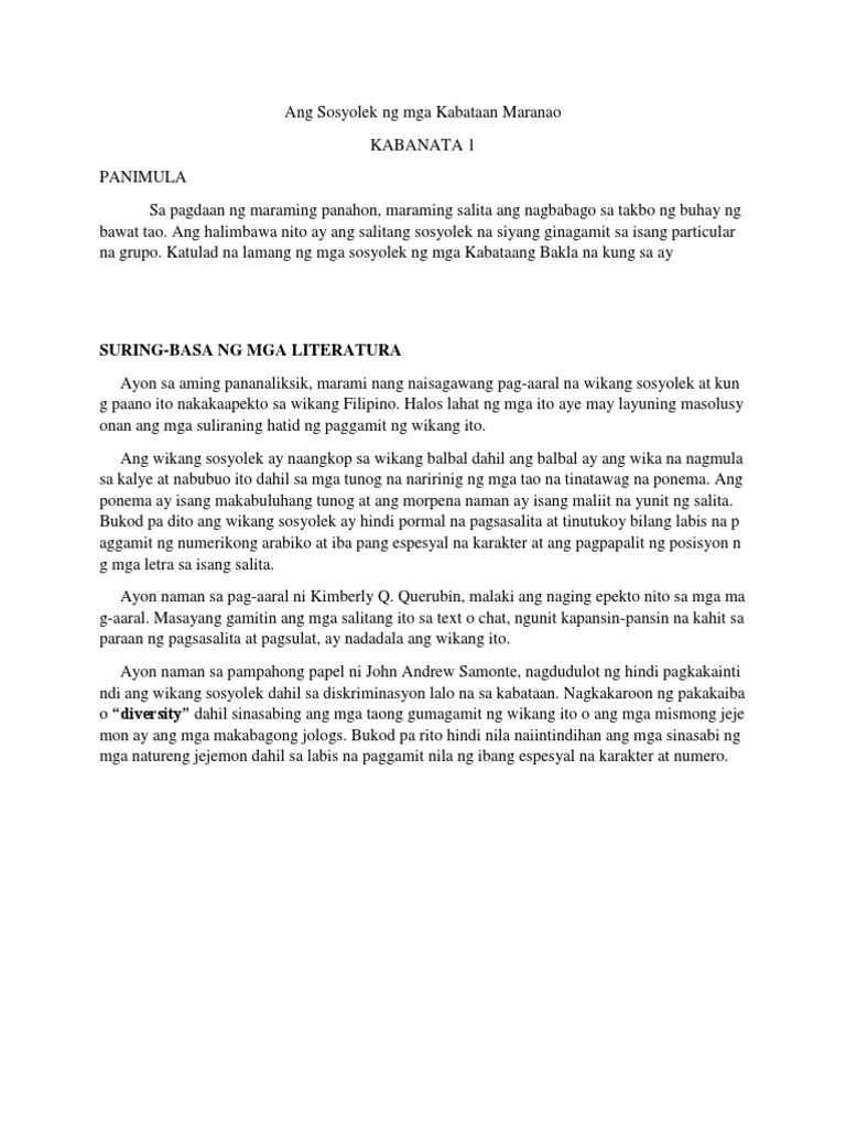 Ang Sosyolek Ng Mga Kabataan Maranao Docx