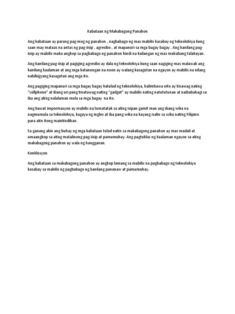Kabanata 1 Epekto Ng Makabagong Wika Docsity